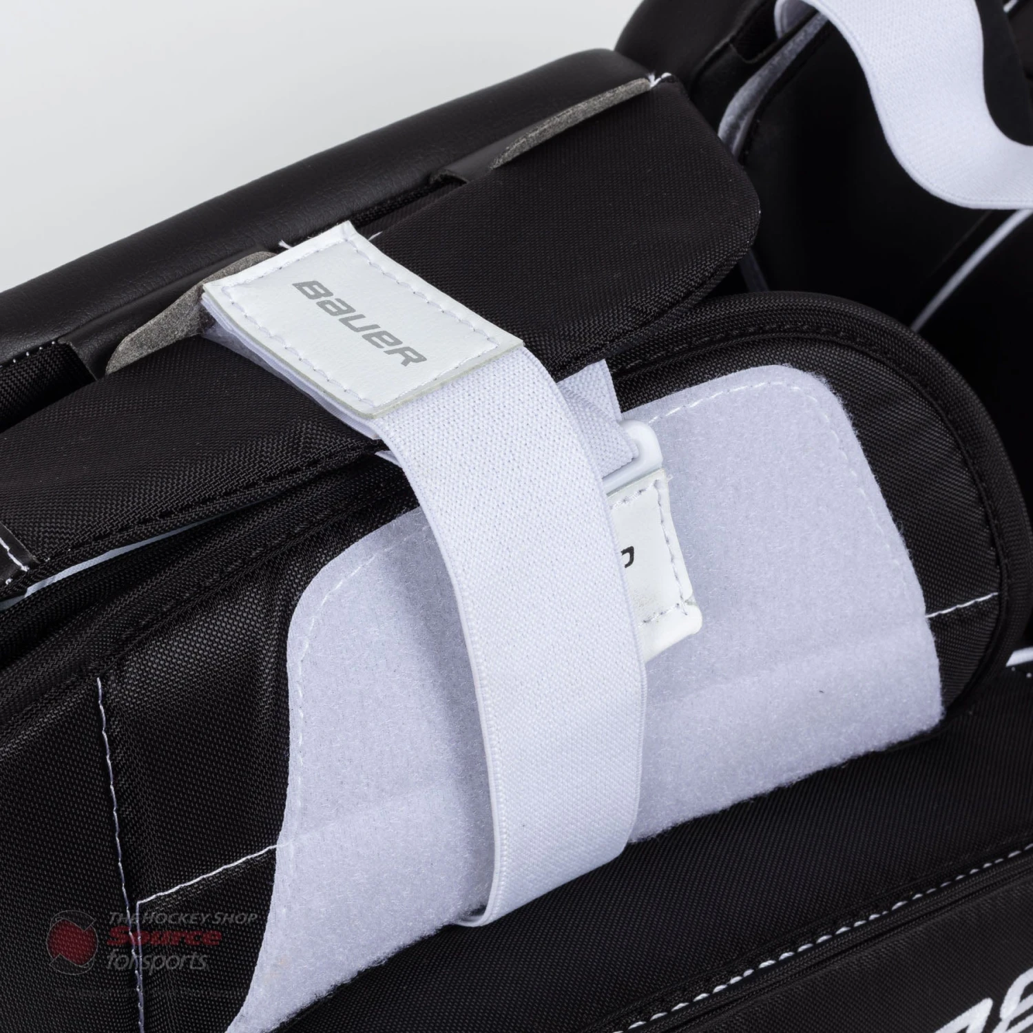 The new GSX line will feature Bauer’s new bungee cord toe strapping system. The stretchy toe tie system will allow the leg pad the flexibility to move freely with a quick rebound back into its original position. The toe cords are offset on the pad off the shelf, but have additional positions to be centred if preferred.