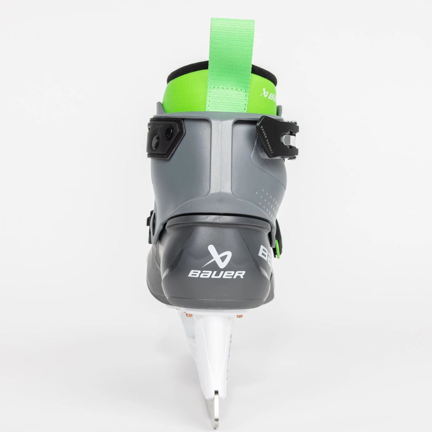 Unlike conventional skates, the Bauer KONEKT HF2 uses straps, cuffs, and buckles, similar to ski boots. The skates also use HingeFlex technology, which were also present in the original KONEKT skate. HingeFlex is the upper shell cuff of the boot that moves with your ankle when you move. HingeFlex ultimately makes the skate 22% more flexible in the ankle area. The two buckles at the ankles and toe of the foot are built to lock your foot in in a snap, making it quicker and easier than ever to get ready for the game.