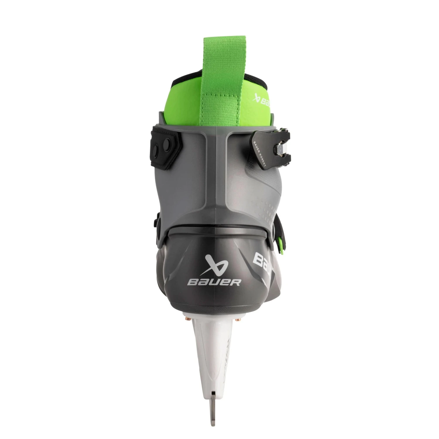 Bauer has been sticking with a black and green colouration for their KONEKT line, and there is no exception with the HF2 skates. The heel is adorned with the Bauer text logo, and their new image logo appears on the heel. The name KONEKT is seen in light grey along the side, and the HF2 branding is also present in the green insole.