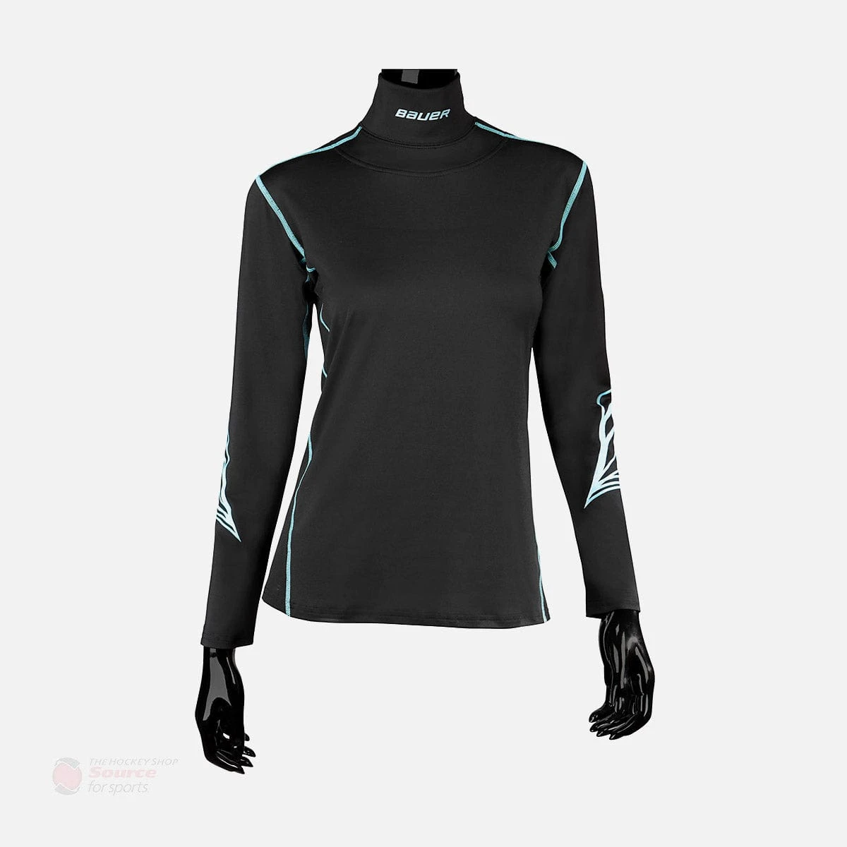 Bauer’s NG Neck Guard Shirt offers the best from Bauer, with a women’s specific design and fit. Designed specifically for hockey, the NG Neck Guard Shirt adds Bauer’s 37.5 moisture wicking fabric which uses player body heat to evaporate sweat to keep players dry. 37.5 maximizes comfort and performance by removing excess body heat and increasing drying times. The NG Neck Guard top also has a high definition grip print along the arms to help keep elbow pads in place. Drop tail hem reduces ride-up; strategic mesh inserts increase ventilation. The NG Neck Guard Shirt also features raglan sleeves, underarm gussets, and flat lock seams to maximize mobility along with comfort and fit. With BNQ and CE certified neck laceration protection the Bauer NG Core offers crucial cut protection with the inclusion of DuPont Kevlar fibers at the neck and clavicle area. An easy close adjustable collar allows for a customized fit and a low profile hook and loop reduces snagging.