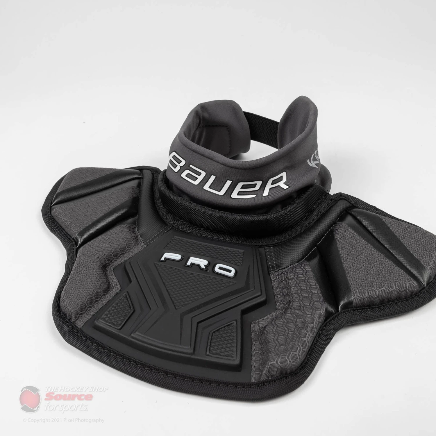New for 2021, the Bauer Pro JR Goalie Neck Guard combines comfortable skate cut coverage and pro-level shot protection. Bauer achieves this through strategic uses of comfortable BNQ-certified material and high density foams.