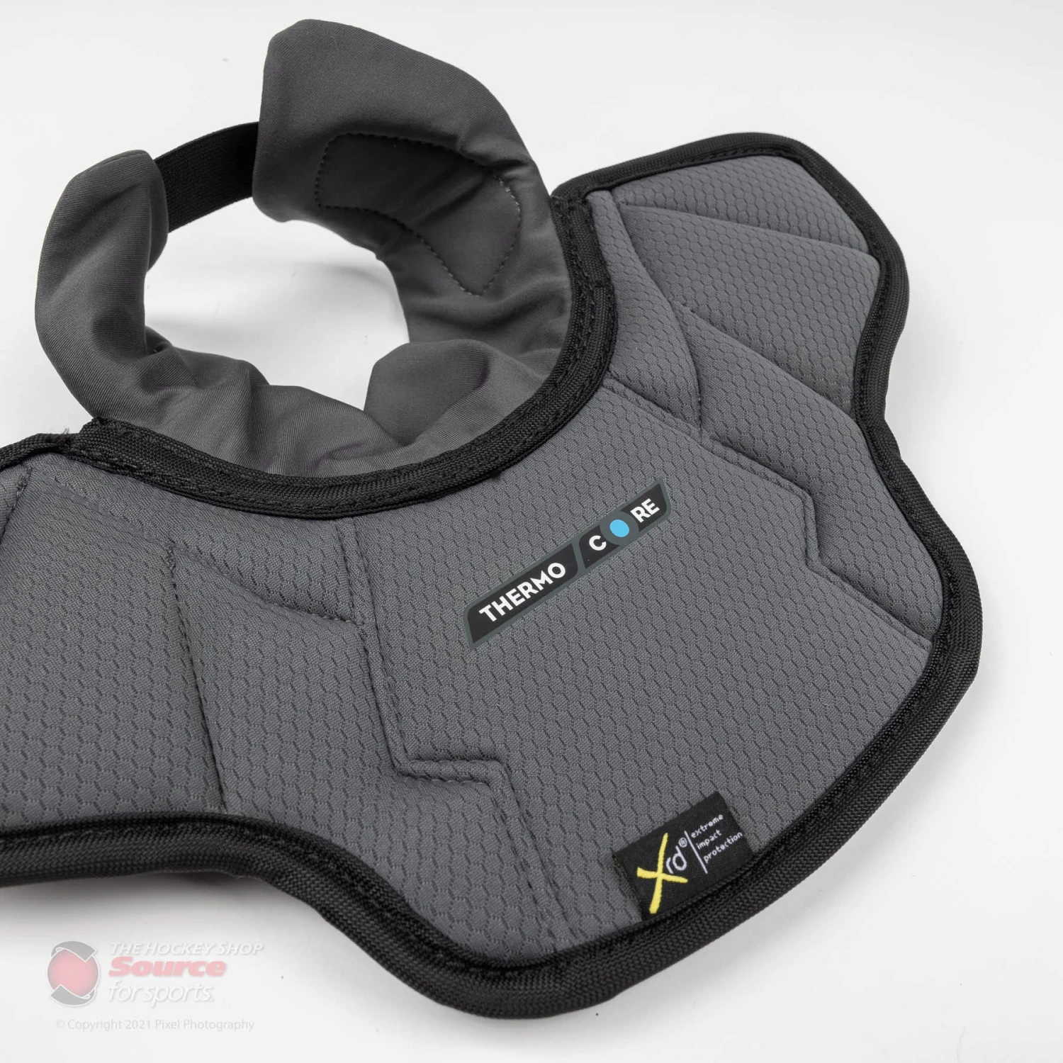 Bauer uses a soft, comfortable Dupont Kevlar collar that wraps around the neck. The exterior of the neck guard is made of nylon on the top to prevent abrasion and ThermoCore underneath to control temperature. One thing worth noting is the use of a new, much more durable velcro than previously seen on Bauer neck guards.