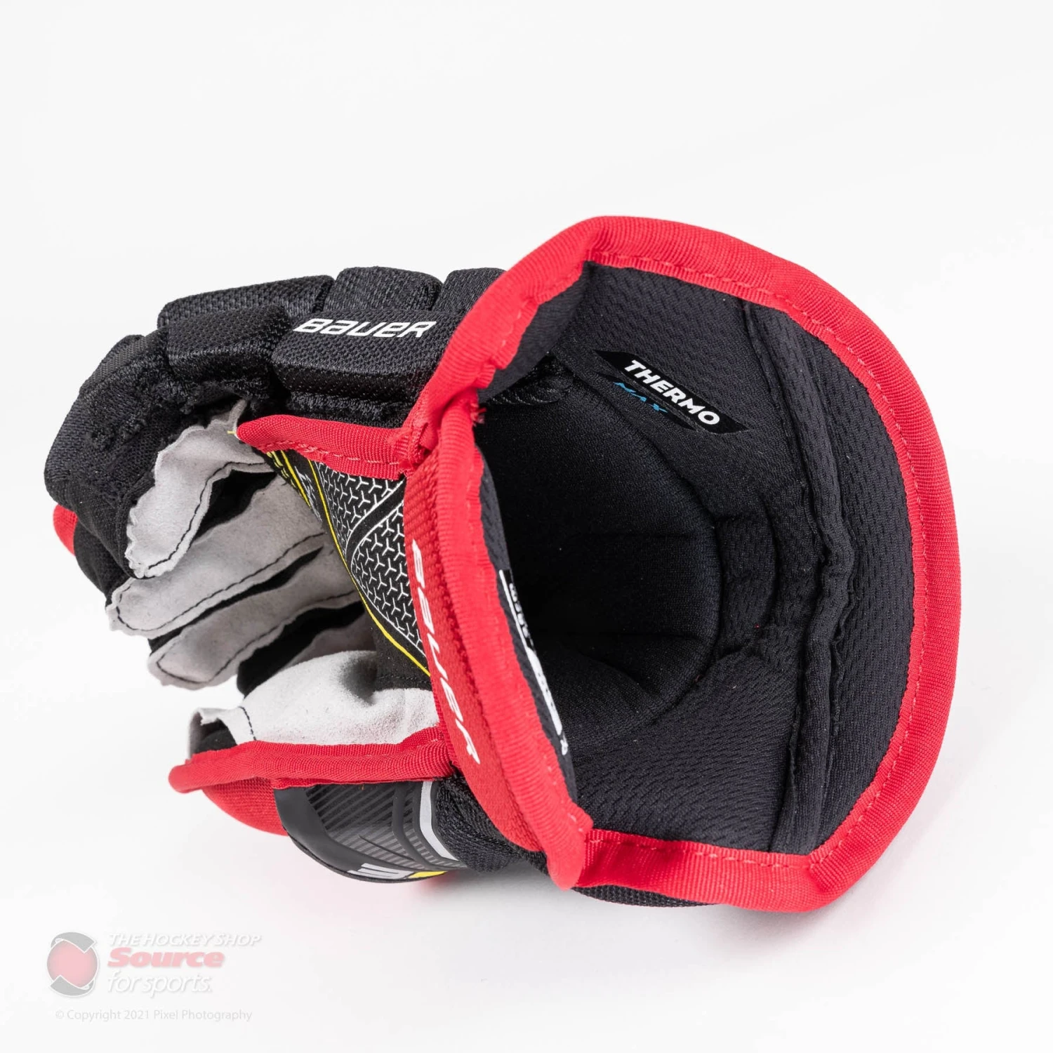 The Bauer Supreme 3S Pro JR Hockey Gloves are built for the elite level player looking for affordable protection and unreal comfort. This glove features key upgrades like Bauers Hyperlite HD Foam, Thermo Max liner, and Connekt+ Palm.