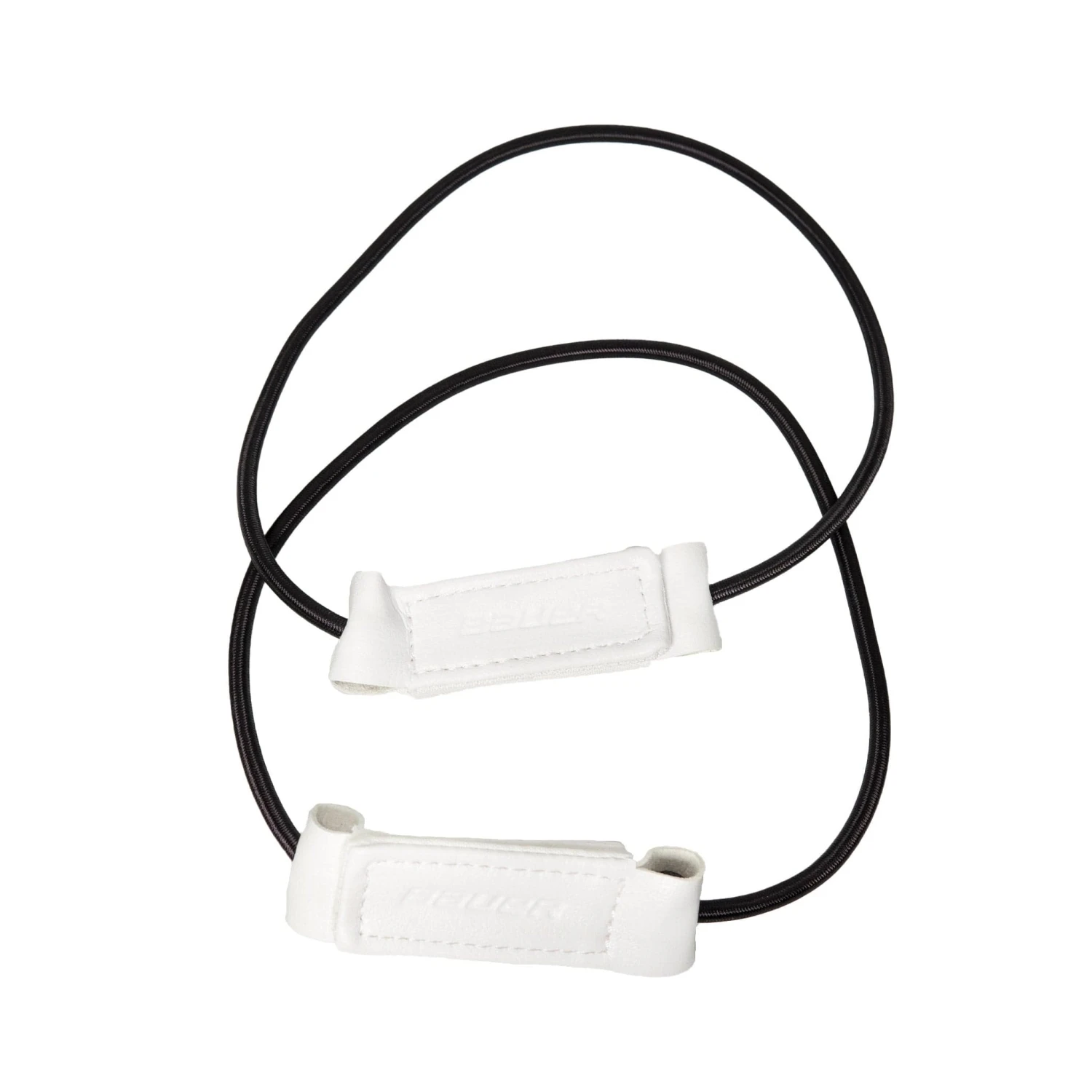 The Bauer Supreme Elastic Toe System is an upgrade or replacement toe bungee that fits all Bauer leg pads. The elastic bungee system keeps the pad closer to the skate allowing for greater mobility when dropping down into the butterfly. The ends are attached with velcro.