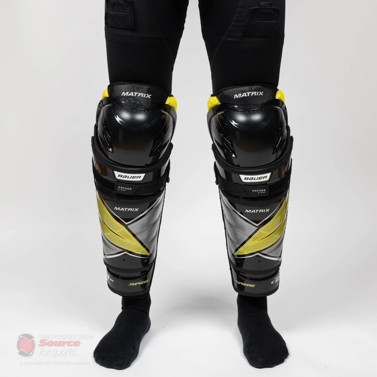 Exclusive to Source for Sports, the new Bauer Supreme Matrix SR Hockey Shin Guards use top of the line features from the UltraSonic and 3S Pro and packages it into a great value option. With Bauer’s new (AMP) Active Motion Protection technology, ErgoDynamic Lab knee cap, and Thermo Max liner, this anatomically fitting shin pad not only has elite level protection, but allows for little to no restrictions in your movements.