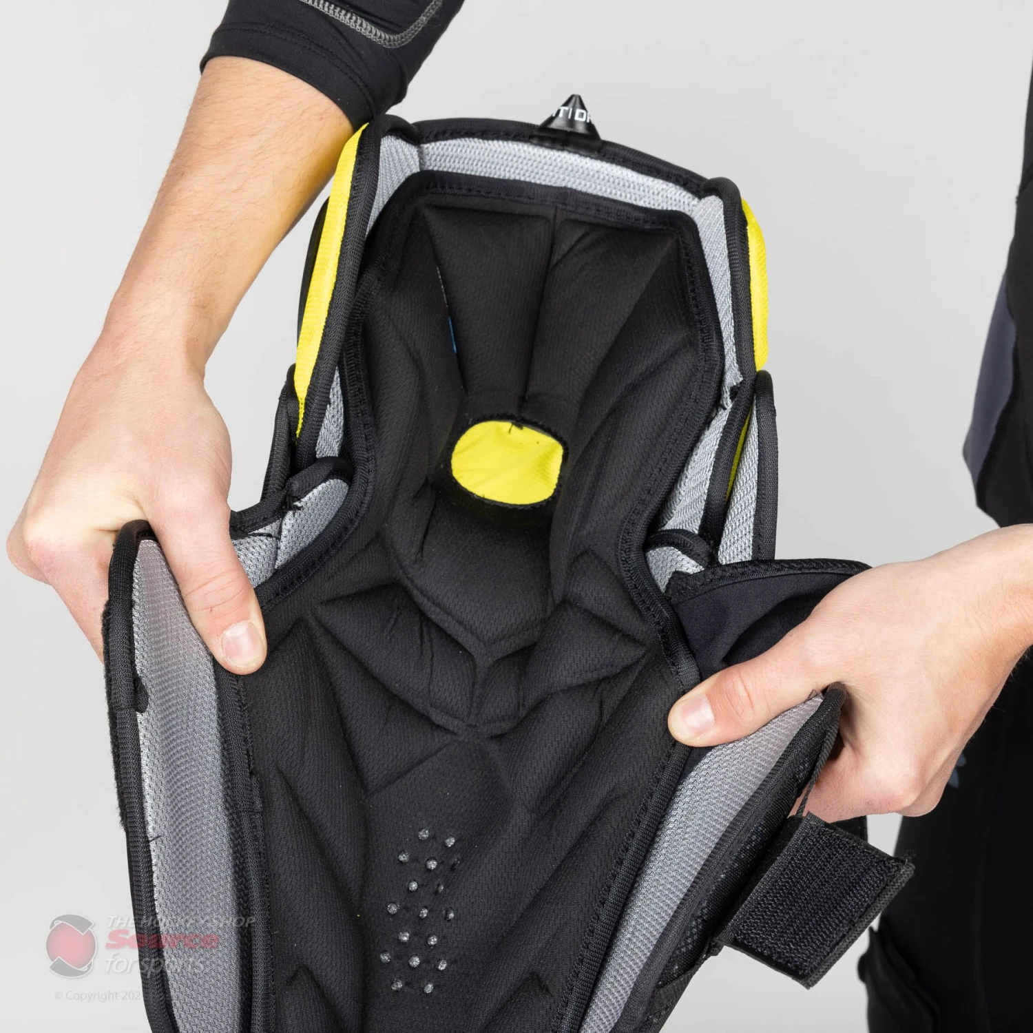Bauer’s Thermo Max liner is infused with an antimicrobial and sweat management system to keep your body temperature regulated and allow the shin pad to dry quickly after use. Additionally, the liner is removable, comfortable, and easily washable.