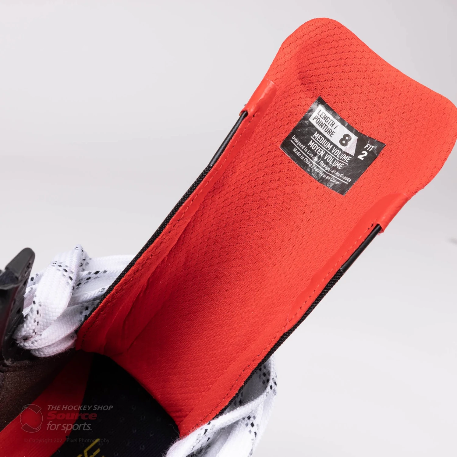 For the 2021 season, we introduce to you the new pro level Bauer Vapor HyperLite SR Hockey Skates. Bauer has really focused on separating not only the cosmetic elements of the two but the performance attributes as well. The main separation now is the flex point of each skate. Supreme we think power, and Vapor we think quickness. We will dive into this later on.